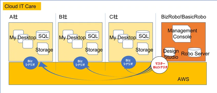 そして、「Cloud IT Care」には、中小企業の生産性向上にも期待される業務プロセスのRPA化*(RPAテクノロジーズ「BizRobo!BasicRobo」)や業務の自動学習機能を専門知識がなくても低価格で利用できるメニューを提供していきます。