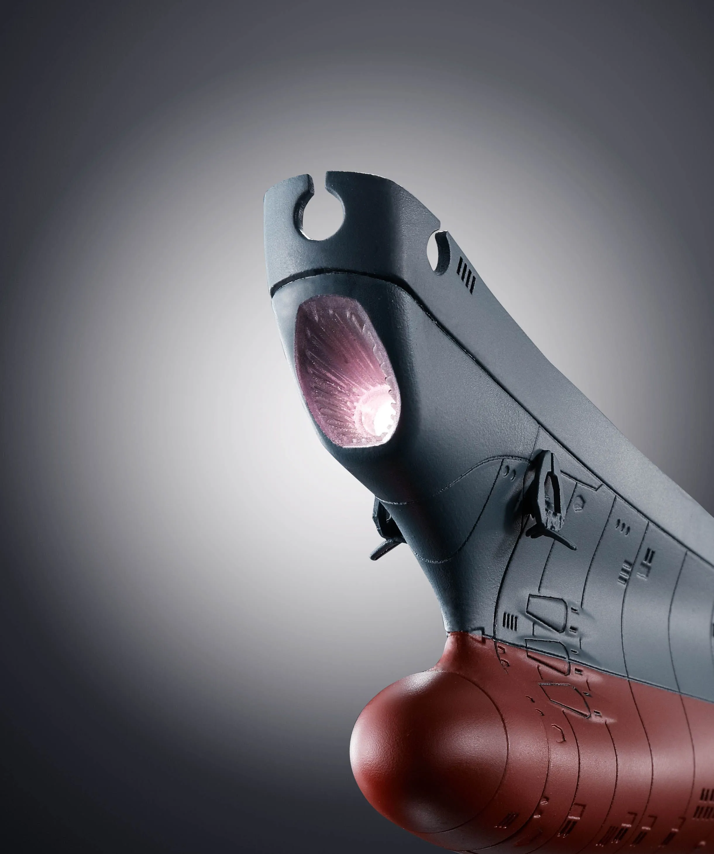 波動砲、波動エンジン、艦橋はクリアパーツを使用し各所が発光します。キャラクターのセリフとともにエンジンが点灯し、航行中はゆらゆらと光り続けます。艦橋は波動砲発射時には劇中同様、消灯する仕様になっています。