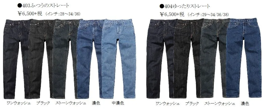 シルエットは、402すっきりストレート・403ふつうのストレート・404ゆったりストレートの3スタイル。