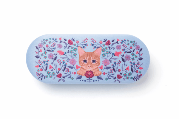 花と猫のメガネケース