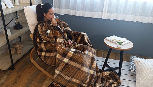 軽く羽織りやすいかいまき毛布。ご家庭でお洗濯可能です。