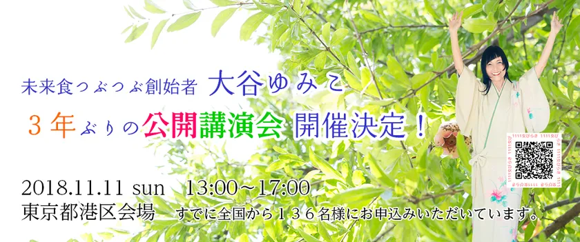 株式会社フウ未来生活研究所(所在地:東京都新宿区)は、当社代表の大谷 ゆみこが3年ぶりの公開講演会を、2018年11月11日(日)に東京都港区にて開催いたしますのでお知らせいたします。