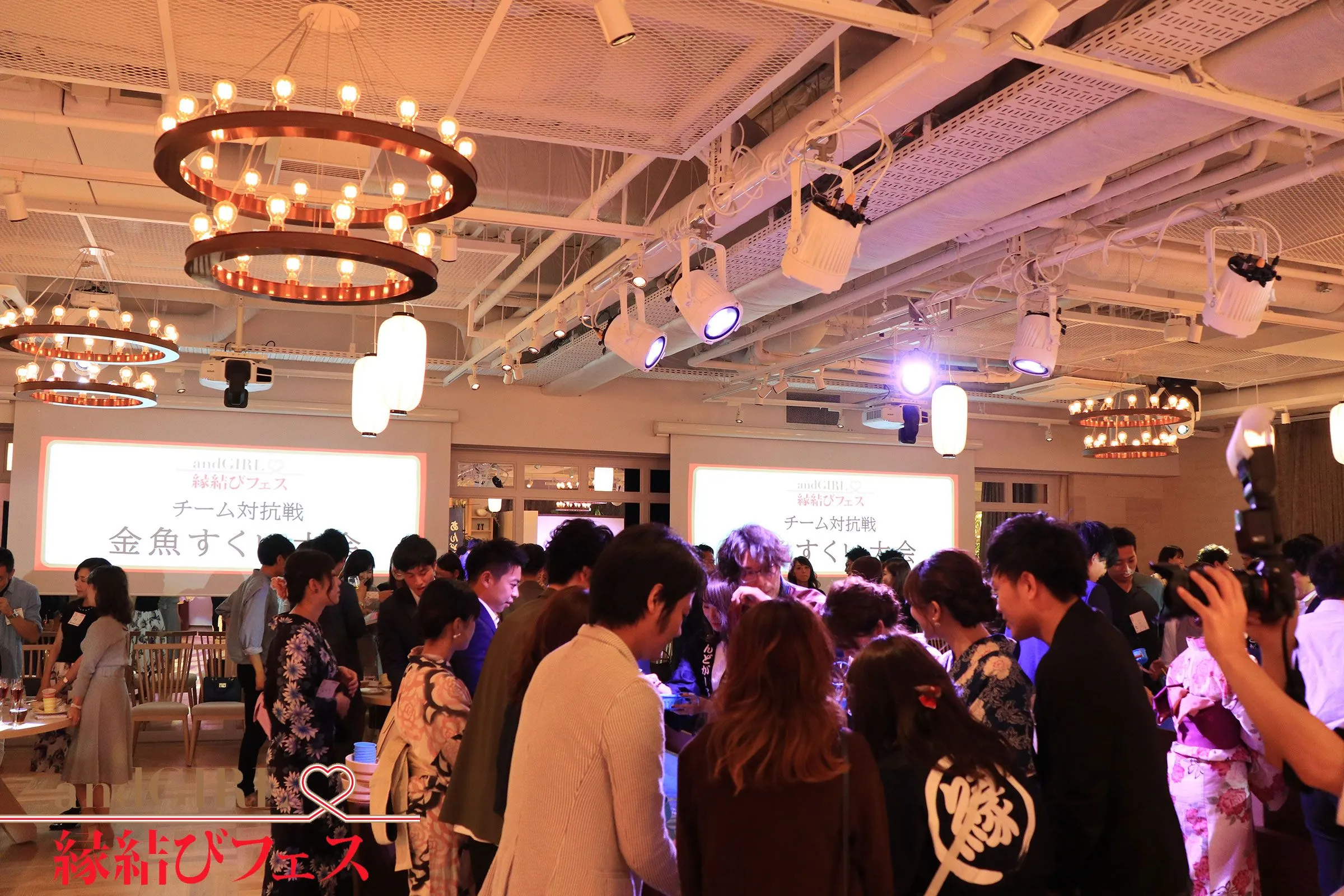 「来るだけで楽しい、出会えればもっと楽しい!」をキャッチフレーズに、縁日をモチーフとした会場にリア充なアラサー男女が集い、従来のお見合いパーティーとは全く違う華やかなものとなりました。