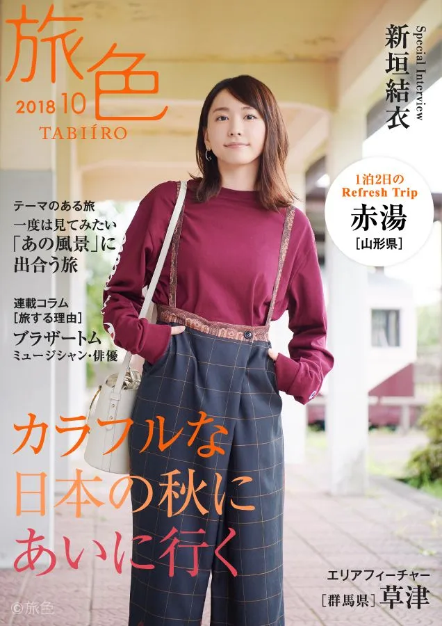 表紙・巻頭インタビューは、大きな瞳と明るい笑顔が魅力の新垣結衣さんを迎え、山形県・赤湯の旅をご紹介。のどかな田園が広がり、童話や民話の記念館が建つ赤湯の町を歩く、少し懐かしい気持ちになる旅です。リラックスして旅を楽しむ、ガッキーの表情にも注目してください。