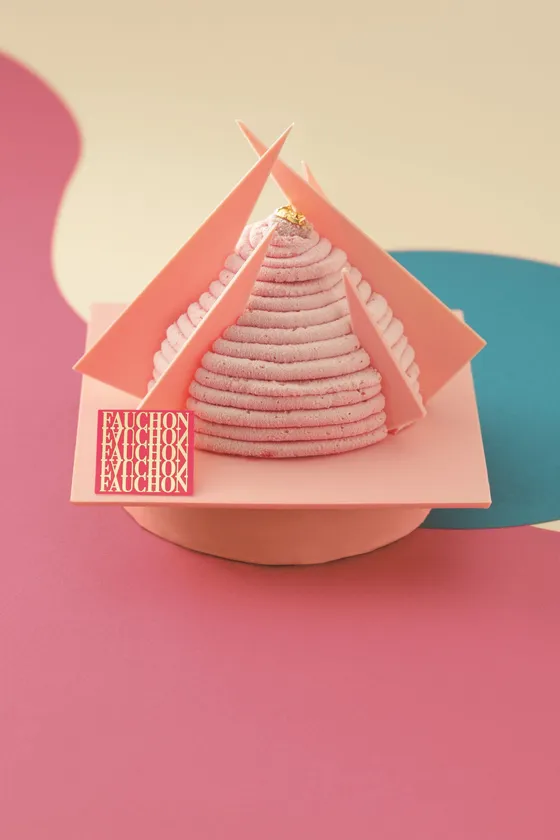 2018年のFAUCHONのクリスマスケーキは日本でも根強い人気を誇るモンブランをフォションスタイルで進化させ、クリスマスツリーをスタイリッシュに模りながら、キュートなストロベリーピンクカラーに仕上げました。