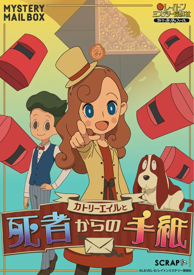 株式会社SCRAP(本社:東京都渋谷区 代表:加藤隆生)は、アドベンチャーゲーム「レイトン教授」シリーズ初のアニメ作品『レイトン ミステリー探偵社~カトリーのナゾトキファイル~』とコラボレーションした謎解きイベントMYSTERY MAIL BOX「カトリーエイルと死者からの手紙」を、ナゾ・コンプレックス名古屋とアジトオブスクラップ大阪ナゾビルで開催することを発表いたします。