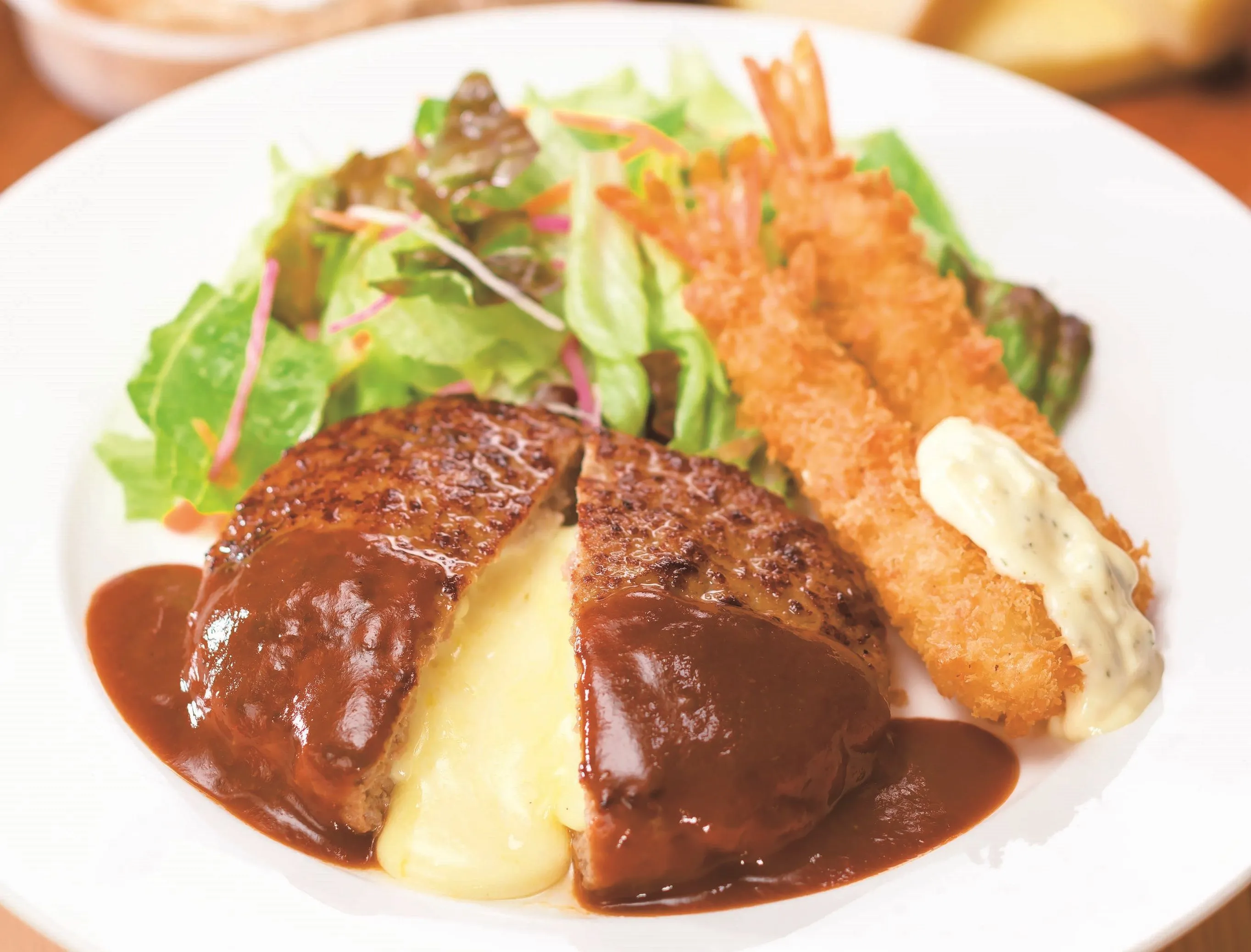 2. チーズINハンバーグ&海老フライ 749円 【通常価格849円】