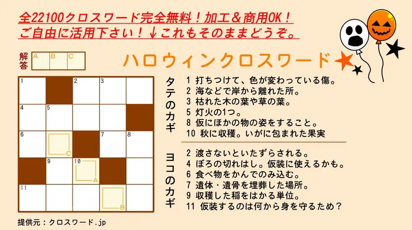 ◆「ハロウィンクロスワード」のデータを無料配布しています。