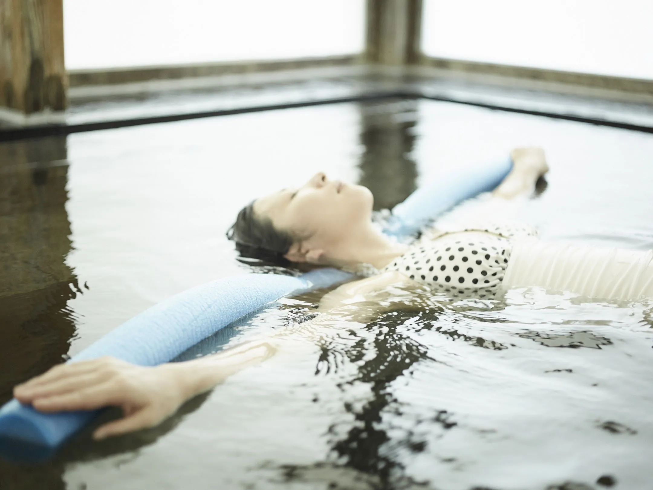 星のや軽井沢宿泊者専用の温泉「メディテイションバス」にて「Onsenマインドワーク」を体験します。星のや軽井沢オリジナルの「瞑想入浴法」をベースにした、温泉を使用したアクティビティです。メディテイションバスには「闇の部屋」・「光の部屋」と呼ぶ2つの浴槽があります。闇の部屋では暗闇の中に響く音や水の揺らぎを感じ、光の部屋では身体を湯に浮かべた「浮遊浴」の状態で瞑想します。デジタル機器や様々な雑念から離れ、全身から余分な力が抜けます。身体の芯から温まり、心が鎮まり、深くリラックスした状態へと導かれます。
