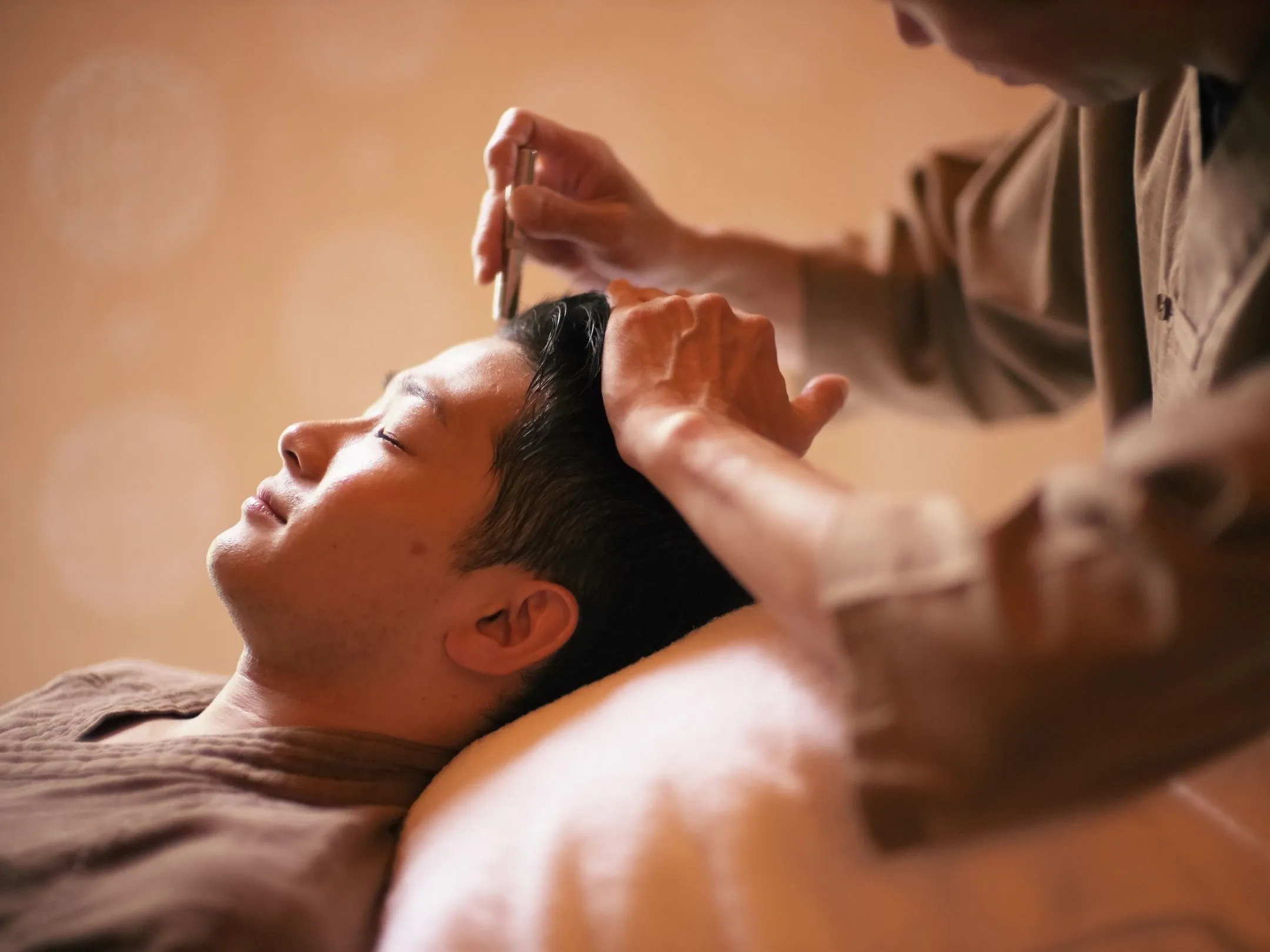 星のや軽井沢の鍼灸指圧師が、お客様の体調に合わせて行う指圧と鍼の施術です。デジタル機器の常用は目と脳の疲れを慢性化し、全身を緊張させます。温泉入浴で温まって血行が良くなった身体は、指圧や鍼でほぐれやすくなっており、より深いリラックス感と爽快感を得ることができます。