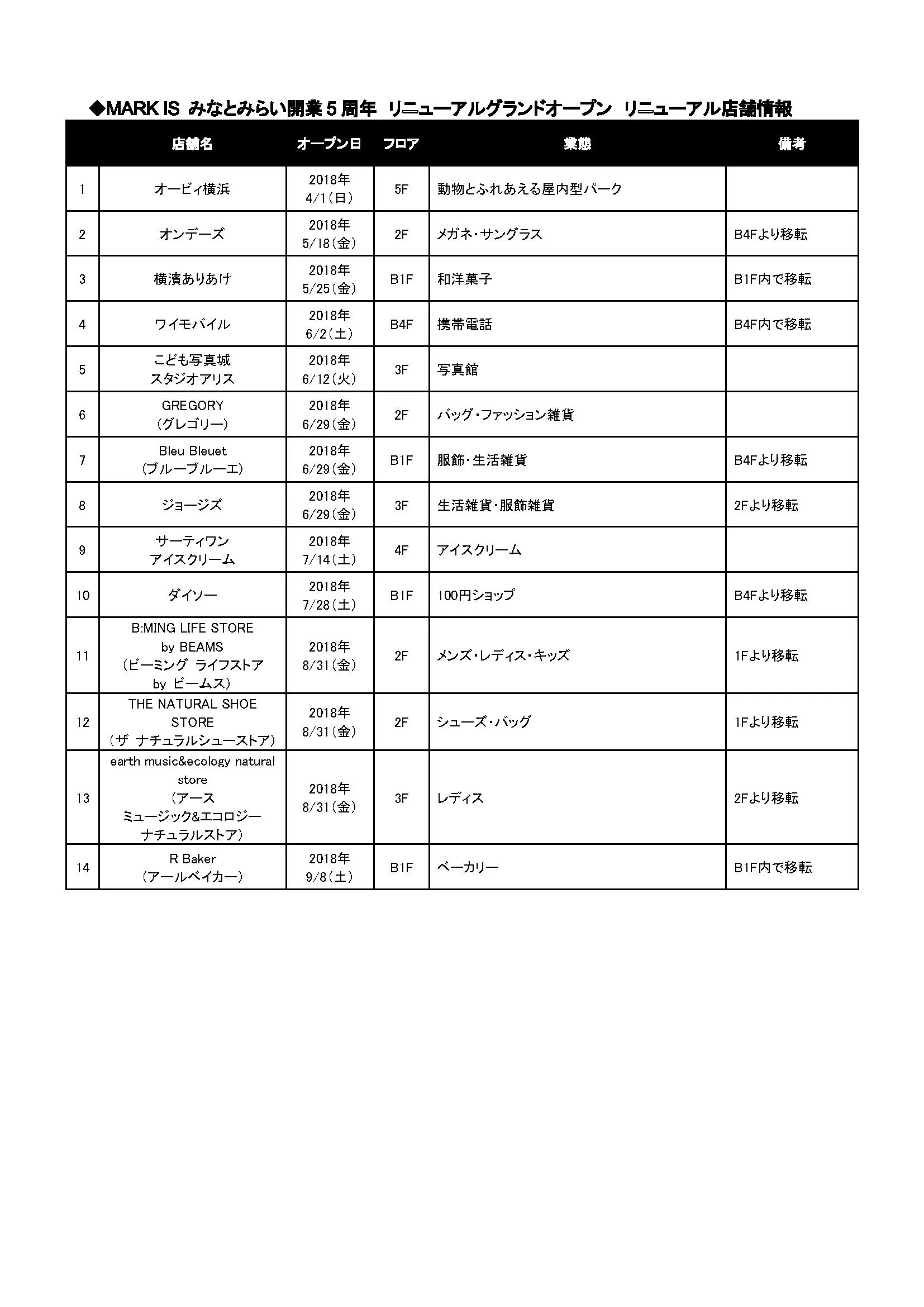 MARK IS みなとみらい開業5 周年 リニューアルグランドオープン