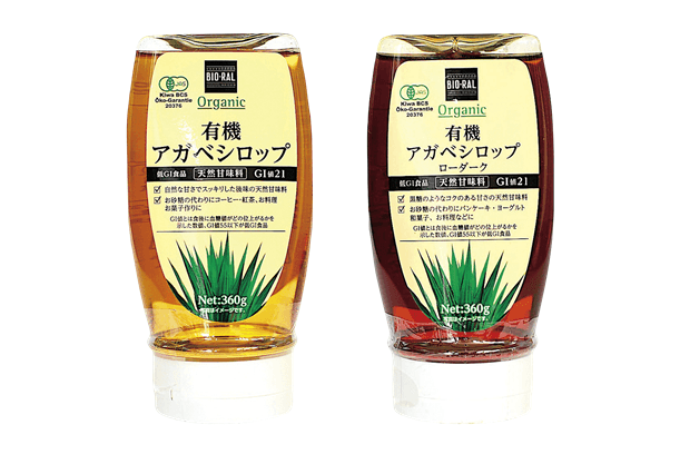 <特徴>原料に有機栽培の「ブルーアガベ」を100%使用した天然甘味料です。血糖値の上昇を穏やかに低く抑える「低GI食品」でありながら、砂糖よりも甘さが強いのが特徴。
