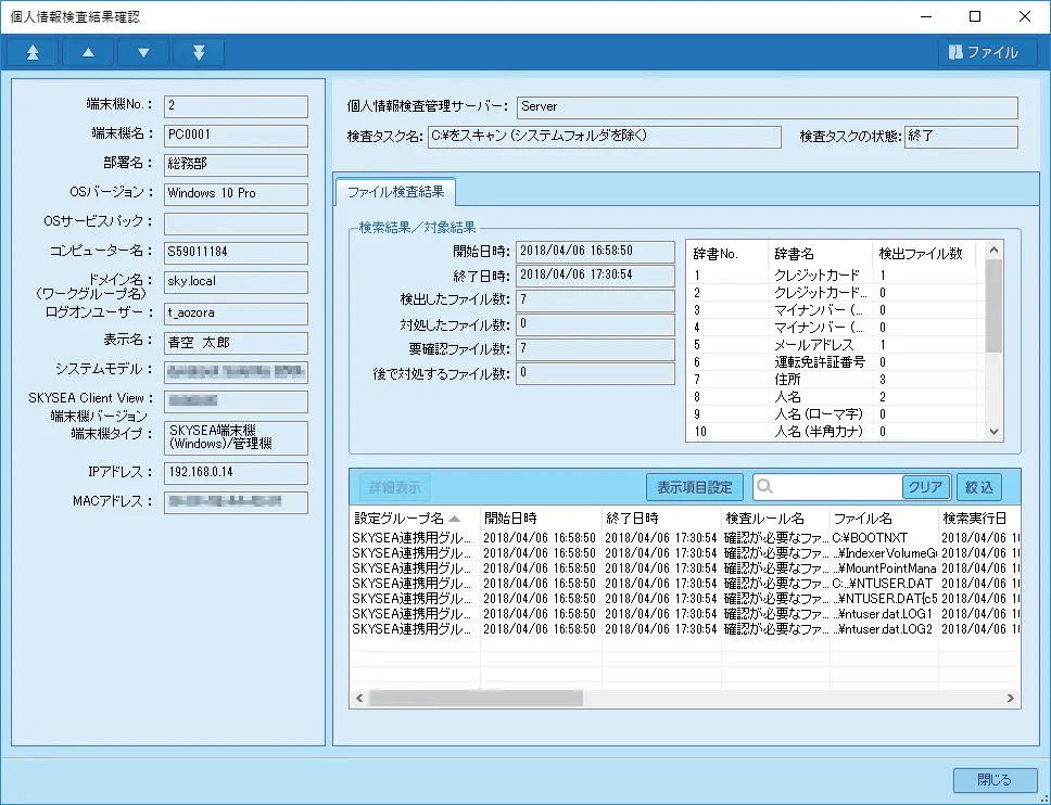 「P-Pointer File Security」は、PCやファイルサーバの中からファイルの内容や属性情報をもとに保管ルールに違反している個人情報ファイルを検出し、