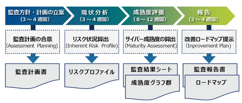 本サービスは、この米国金融機関のスタンダードともいえるFFIEC CATを監査基準として、金融機関に対して、サイバーセキュリティに対する取り組みの成熟度を測り、改善につなげる監査サービスです。