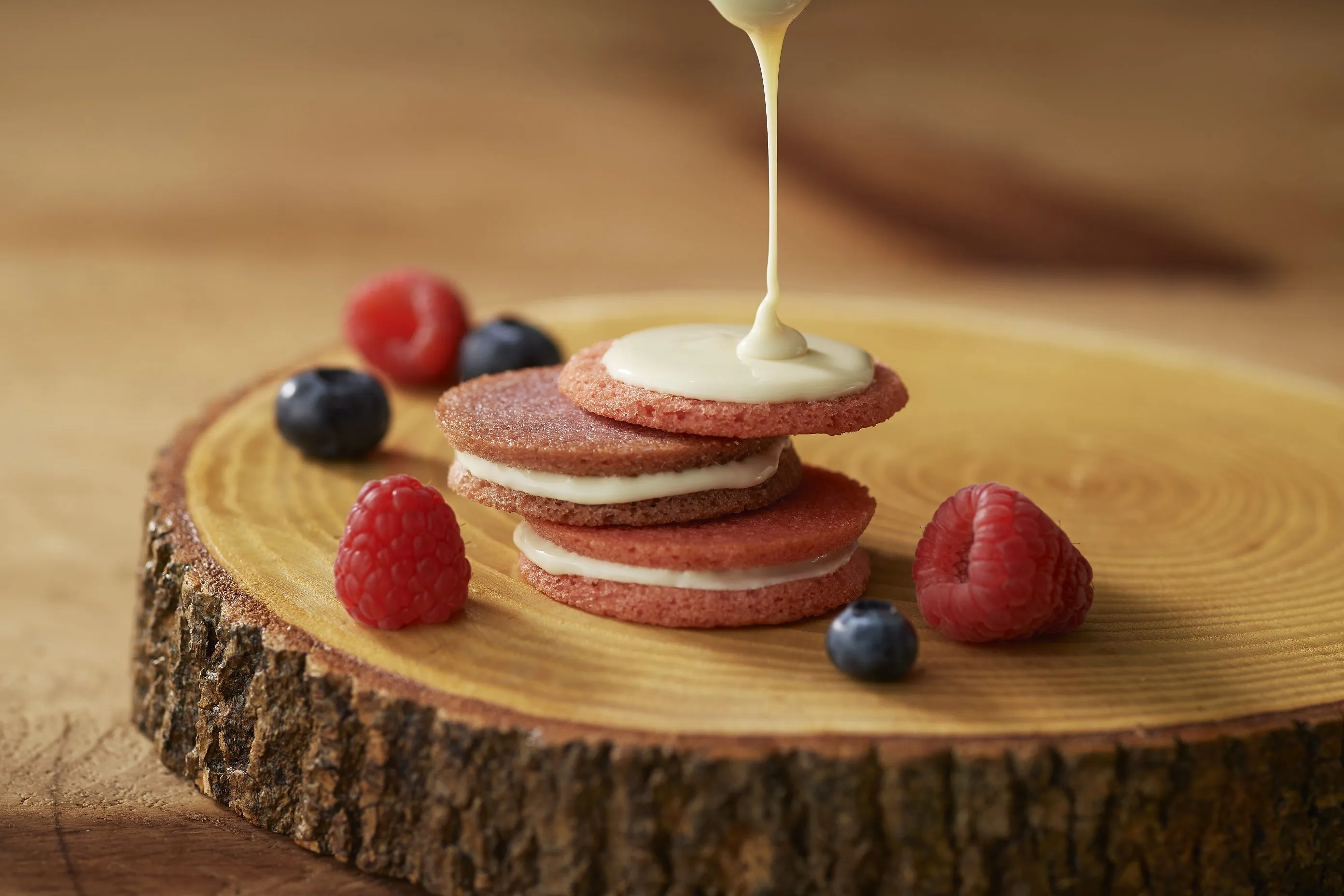 特徴:2種のソース(ラズベリー、ブルーベリー)を練り込んだ