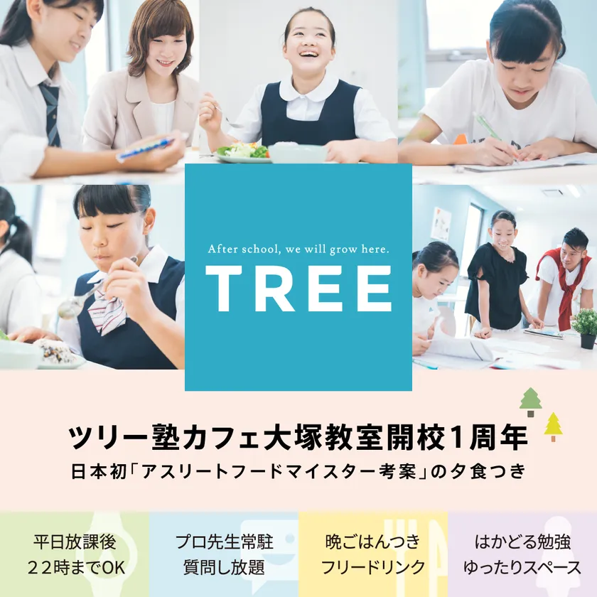 進学塾、学習塾、語学教室、コンピュータ技術教室をはじめとする各種教室の企画ならびに運営する株式会社TREE(読み:ツリー、所在地:東京都豊島区北大塚、代表取締役:延原 聖子)は、当社が展開する進学塾「TREE塾カフェ大塚教室」が開校1周年を迎えましたことをご報告いたします。