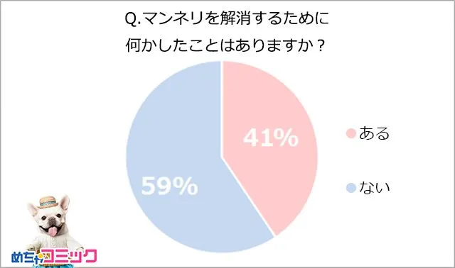 マンネリを解消するために、何か行動を起こしたことがあるのは41%。約半数近くの人が現状突破を試みています。