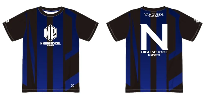 N高「eスポーツ部」のユニフォームデザイン(左:正面/右:背面)