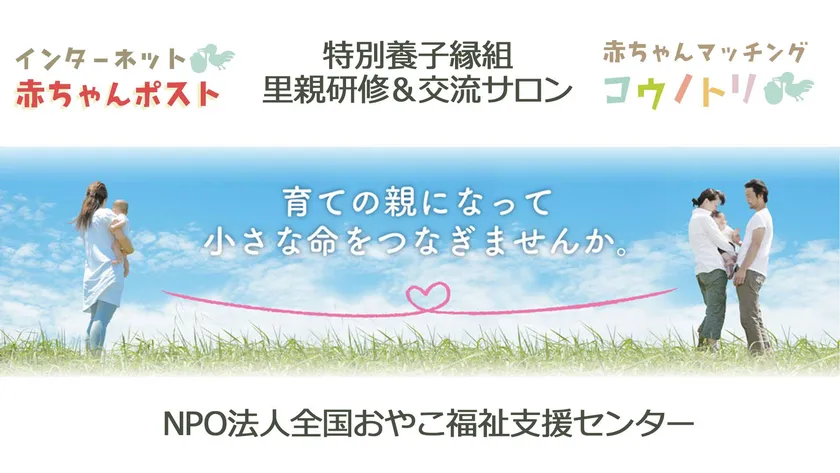 同NPOは大阪市に本拠を置き、全国に21拠点を持つ組織で、国内の養子縁組あっせん団体としては最大手と言えます。「インターネット赤ちゃんポスト」や「赤ちゃんマッチングこうのとり」などのWEBアプリを通して、予期せぬ妊娠などにより産んでも育てることのできない母親と養父母とのマッチングを行っています。
