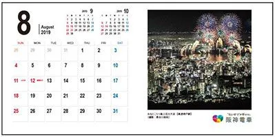 <阪神沿線カレンダー イメージ ※画像は2019年版>