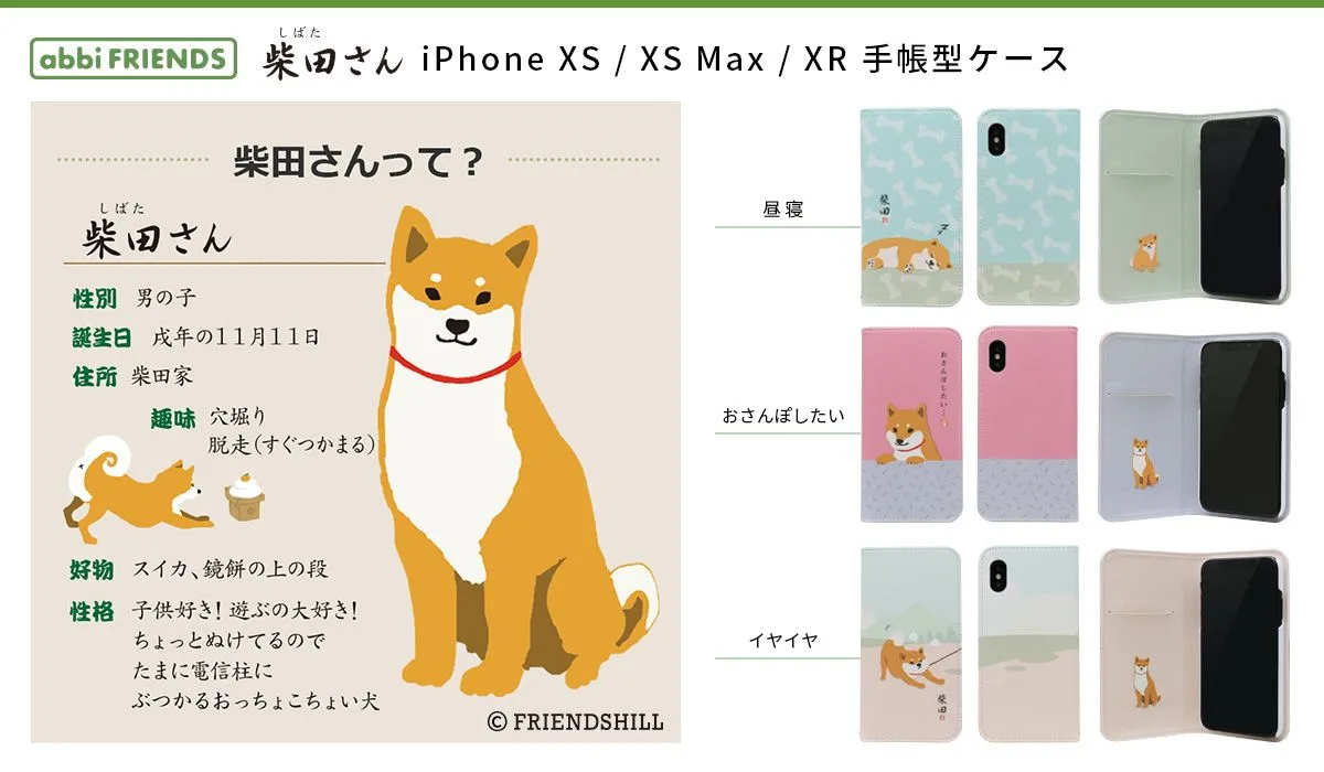 モバイル周辺アクセサリー専門の株式会社ロア・インターナショナル(所在地:東京都新宿区、代表取締役社長:Ally Won)は、abbi FRIENDS(アビィフレンズ)ブランドから柴犬の人気キャラクター、しばたさんをかわいくデザインしたiPhone XS / XS Max / XR(5.8インチ、6.5インチ、6.1インチ)専用の手帳型ケースを発売しました。