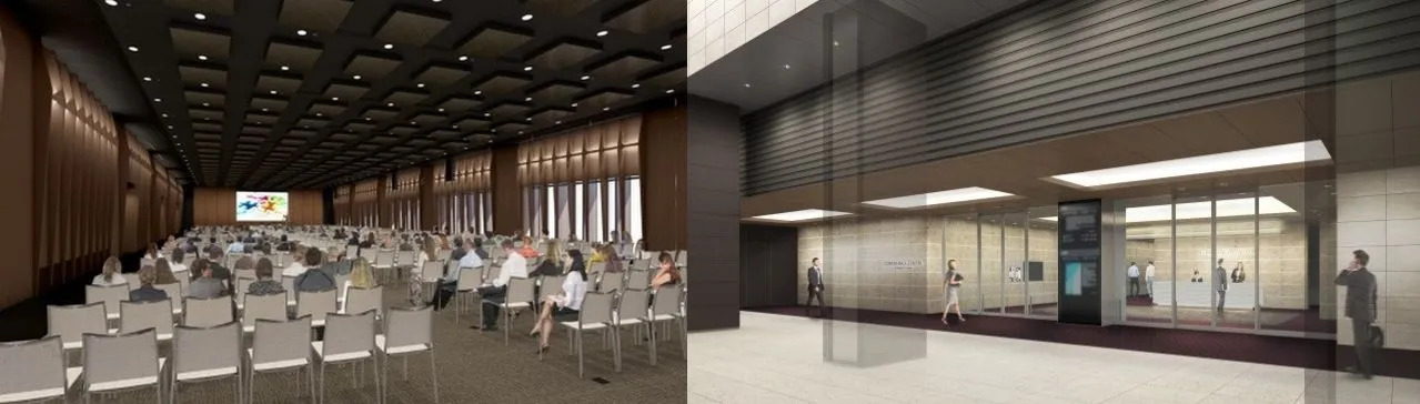 1・2階には国際会議から企業セミナーまで多彩な用途に対応する「大手町プレイスカンファレンスセンター」をオープン。大手町駅連絡(予定)という絶好のロケーションのもと、分割可能な合計750平米のホールの他、複数のカンファレンスルームを備えております。