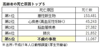 また、高齢者の死亡原因は、疾患を除くと転倒などその他の事故が多く、交通事故を上回る数字です。転倒・転落事故が起こりやすいのは、過ごす時間の長い家の中が圧倒的。住環境や生活習慣などに合わせて、早めの対策が必要です。