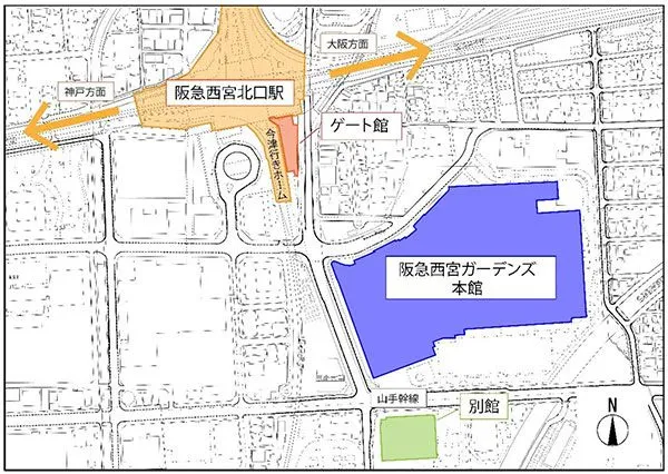 阪急西宮ガーデンズ(本館・ゲート館・別館)の施設概要と位置図