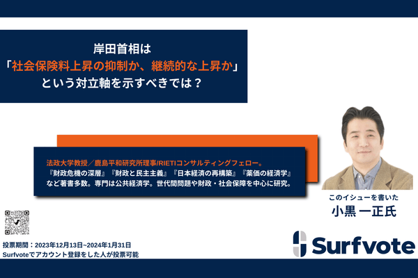 法政大学教授・公共経済学専門の小黒一正氏がSurfvoteに初参加! 初回イシューは「岸田首相の社会保険料を抑制する施策」について