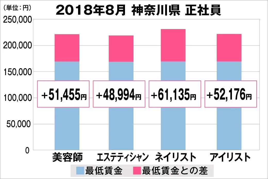 2018年8月 最低賃金から見る美容業界の給料調査【神奈川版】 (美プロ調べ)
