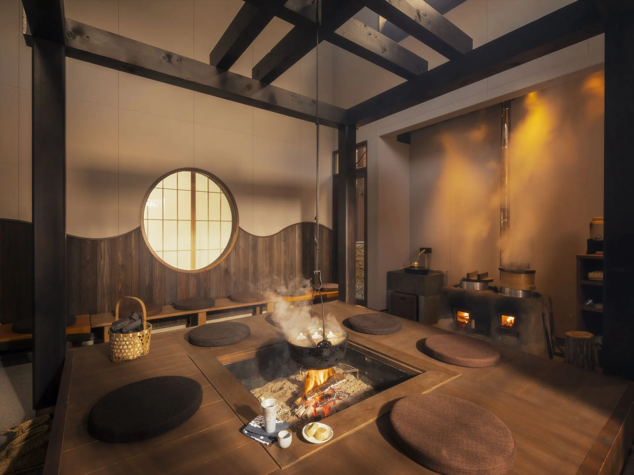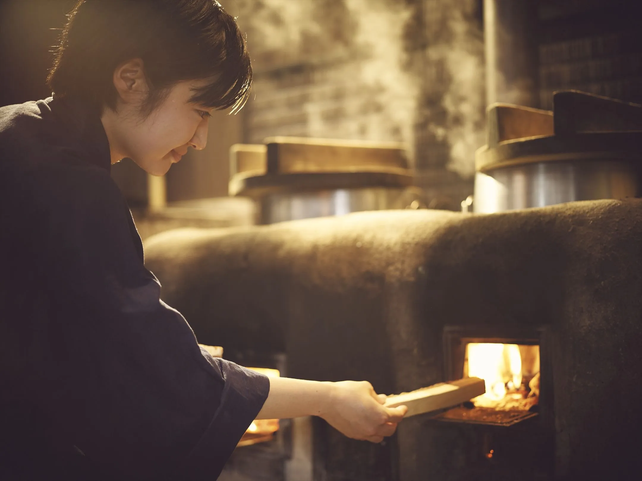 *かまどで炊き上げる香りも楽しむ。