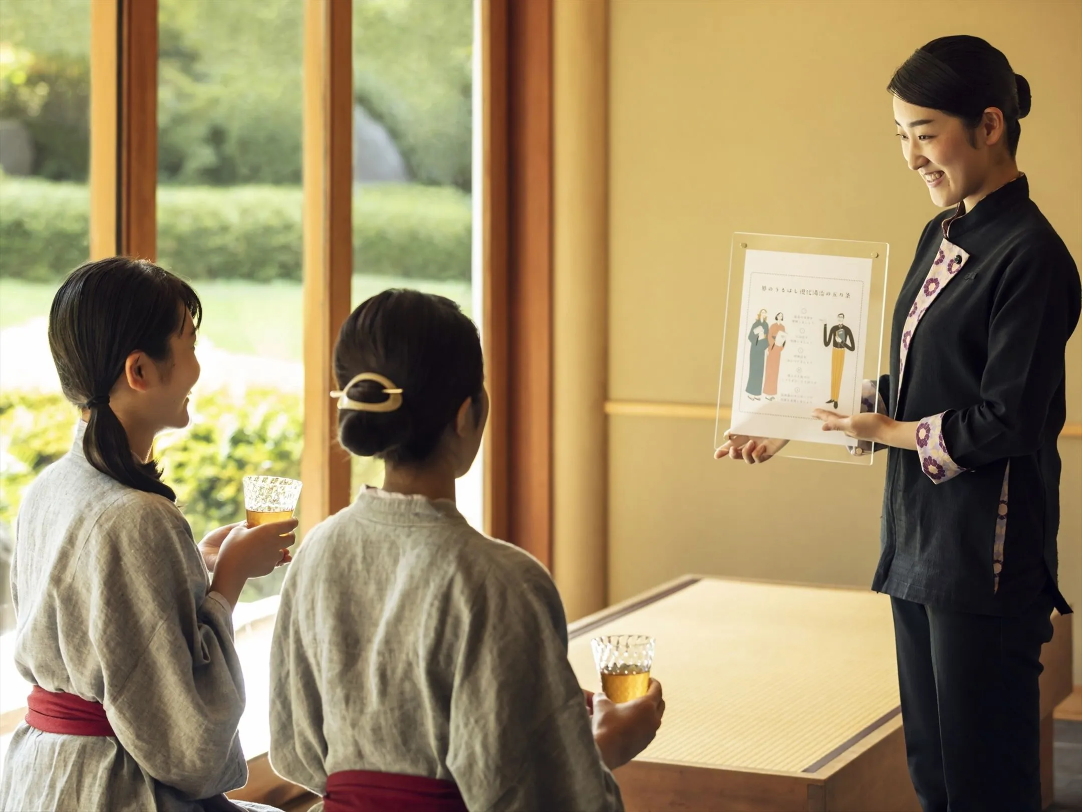 今回登場した界の湯守りは、各施設の温泉の特徴を捉えた入浴方法はもちろん、食事や文化体験など含めた温泉旅館の過ごし方を案内します。