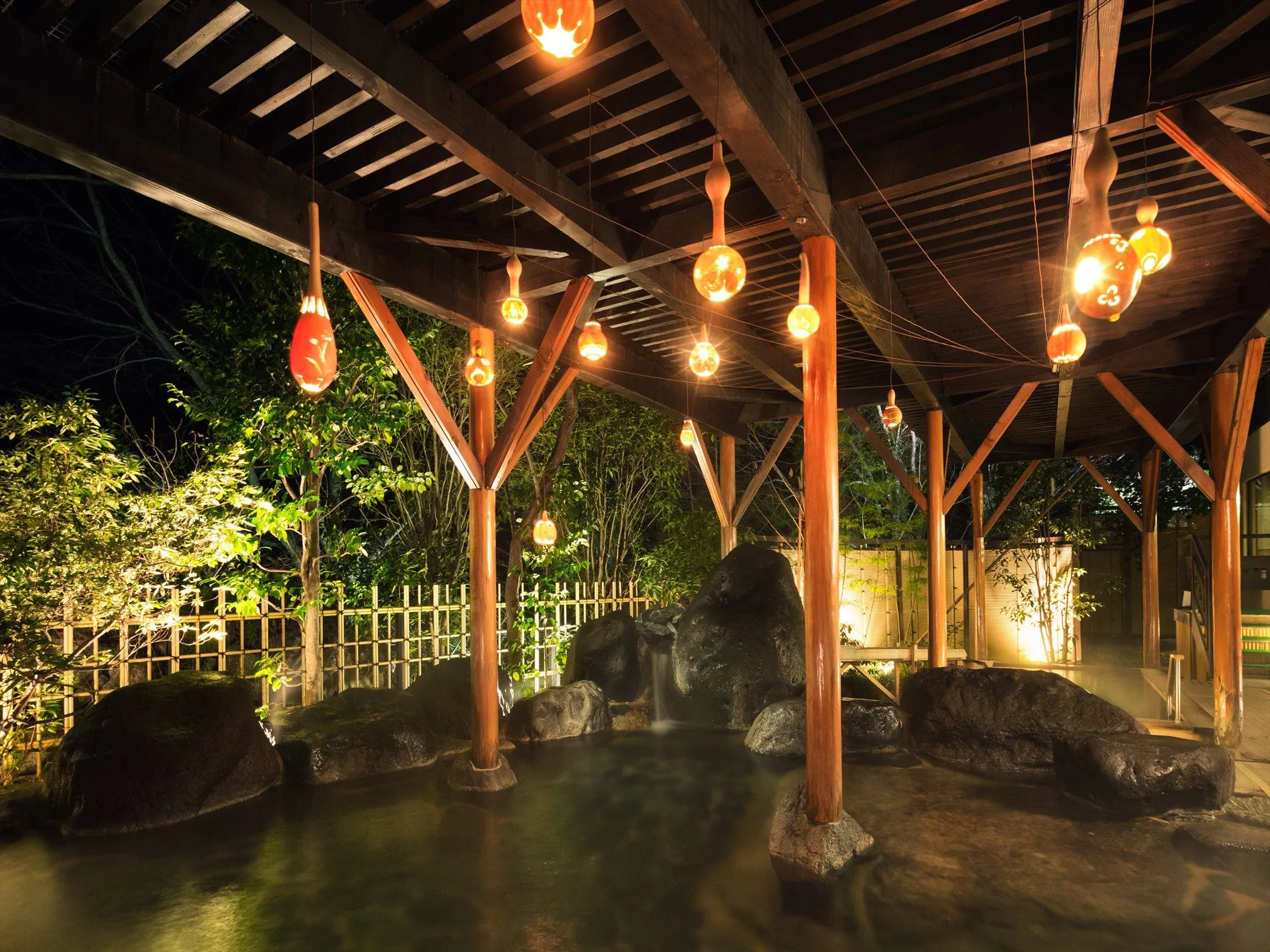 21:30 瓢箪ランプのもと入浴