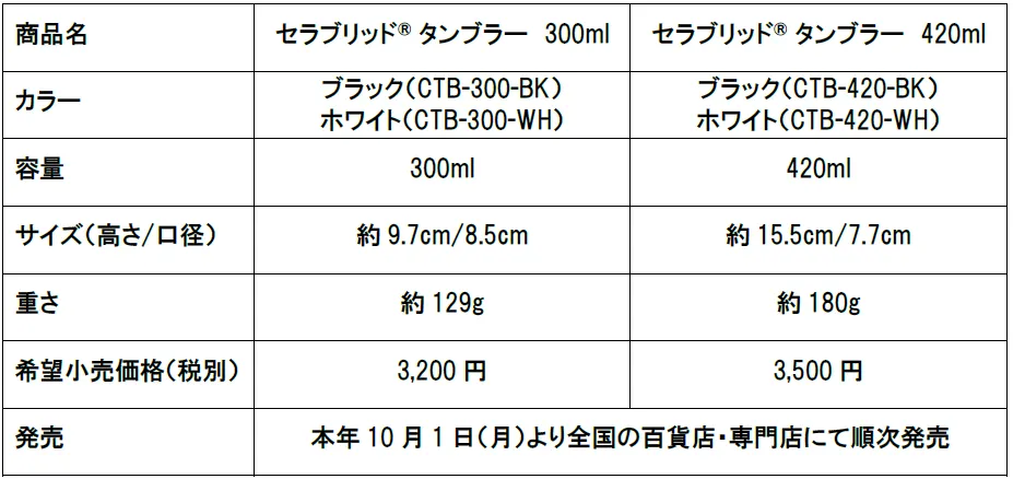 京セラ株式会社(社長:谷本 秀夫)は、セラミックキッチングッズの新商品として「セラブリッド(R) タンブラー」を商品化し、本年10月1日(月)より全国の百貨店・専門店にて順次、販売を開始いたします。