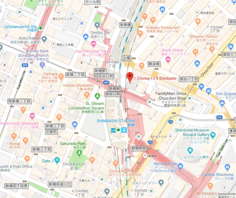 【住 所】東京都港区新橋1-12-9 A-PLACE新橋駅前ビル2階