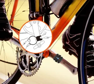 タイヤの回転数から速度を正確に測定するスピードセンサーとペダルが1分間に何回転したかを測定するケイデンスセンサー※1が一体となっており、ボタン電池の出し入れで簡単にスピードモードと、ケイデンスモードを切り替える※2ことができます。