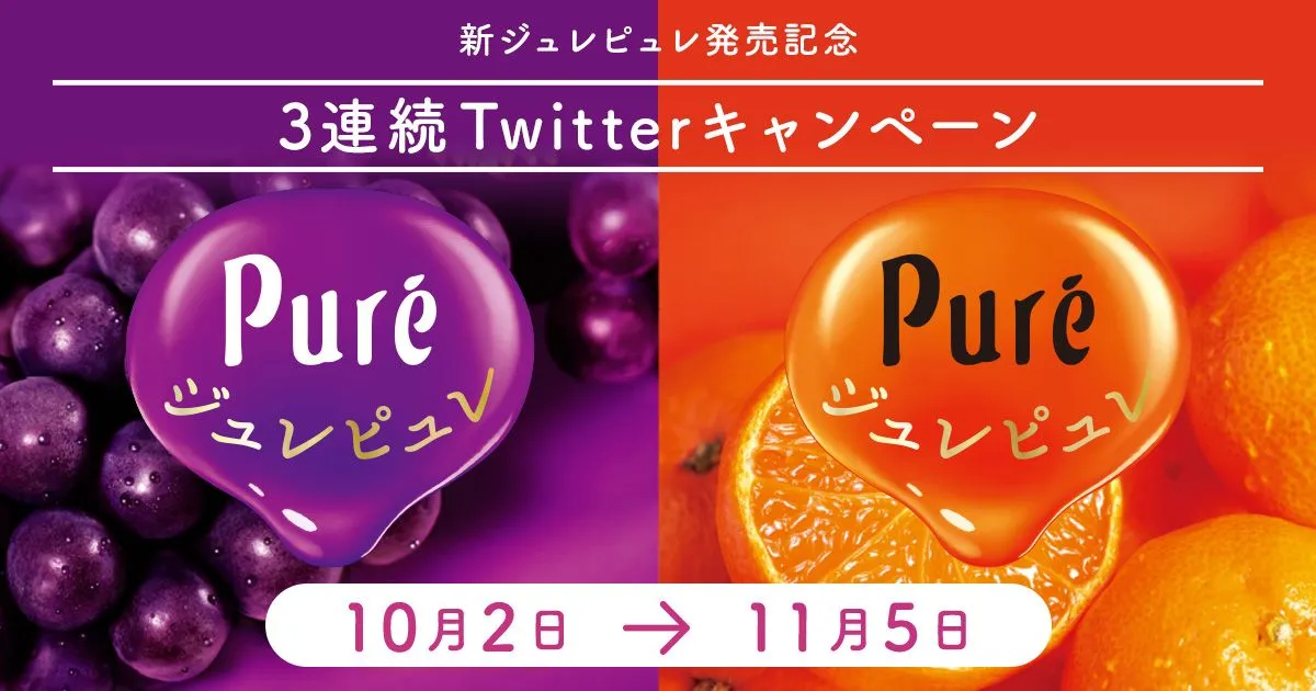 カンロ飴やピュレグミなどでおなじみのカンロ株式会社(本社:東京都新宿区、代表取締役社長:三須和泰、以下 カンロ)は、新ジュレピュレの発売を記念して、「3連続Twitterキャンペーン」を10月2日(火)より開始いたします。