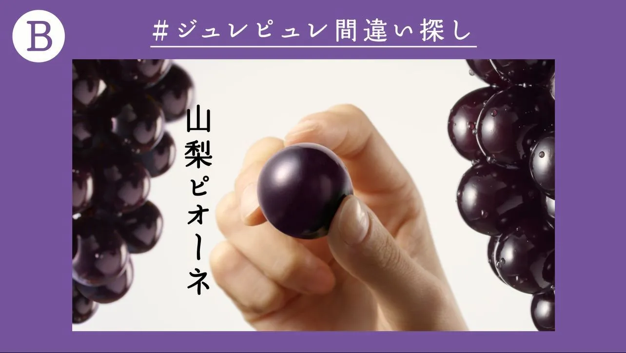 その第1弾となるのは、ジュレピュレ山梨ピオーネのとろり、じゅわり動画を用いた間違い探しです。A(正しい動画)の後にB(間違い動画)を見て、間違いがいくつあるか答える内容となっており、何気なくユーザーに間違われがちなあんなことや、いつの間にかなくなっているあんなものなど、未だカンロ社内でも正解者が出ないほど“超難問“です。