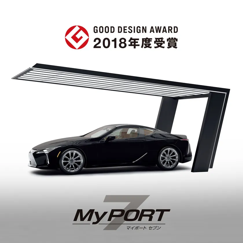 「マイポート7」は、柱と屋根を支える梁を一体化させたスタイルが特長のカーポートで、2003年に販売を開始した業界初の後方支持カーポート「マイポート」シリーズの最新作です。同シリーズは、オープン外構に調和したシンプルモダンなフォルムと、自動車の出し入れや乗り降りがしやすい柱位置で、意匠性と機能性を兼ね備えた「機能美」が市場で高く評価されています。同シリーズでは2013年の「マイポートNEXT」に続く2つ目のグッドデザイン賞受賞となります。