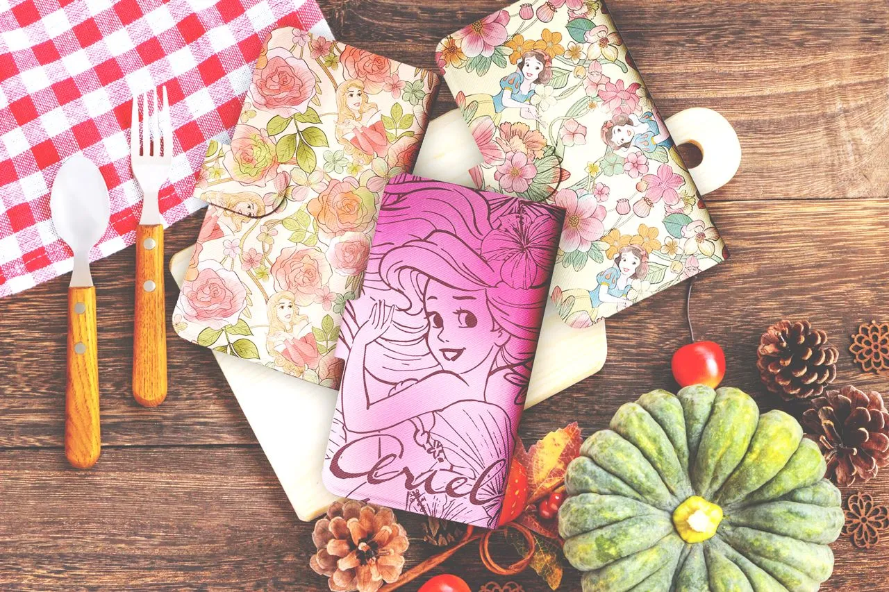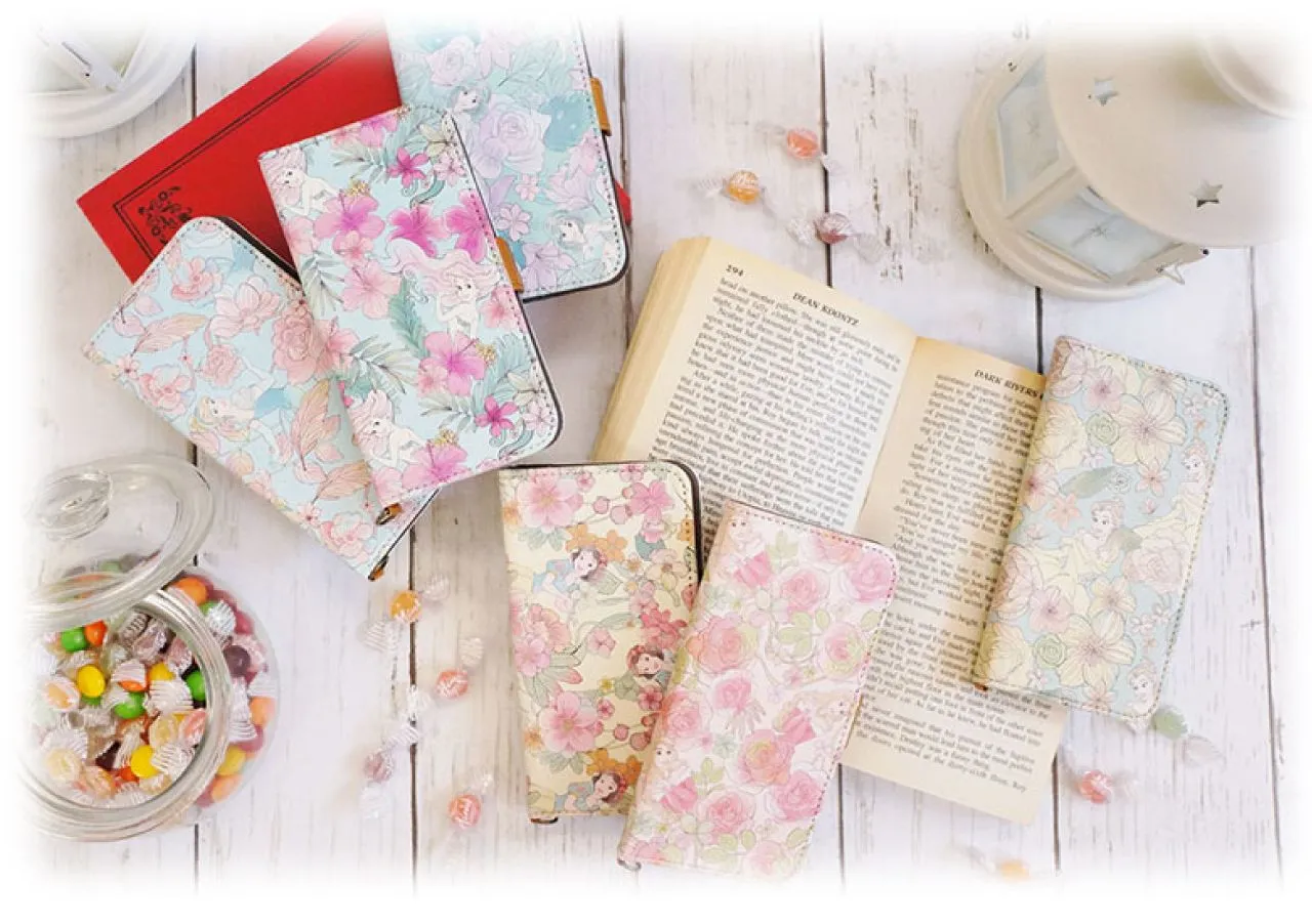 多機種に対応したリバーシブルのマルチフリップカバーです。右開きはプリンセスのダイナミックなイラスト、左開きは上品なフローラル×プリンセスパターンでカバーを外さずに気分でデザインを変える事ができます。