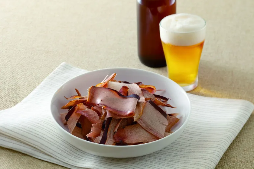 じっくり燻したカツオを、醤油味の調味液に漬けこみ、生ハムのようにしっとりした食感に仕上げています。鰹のうま味、燻製の風味、醤油の味わいがビールや、日本酒、ワインなどによく合います。野菜やチーズとの相性もいいので、サラダやオードブル、サンドイッチなどにも活用して頂けます。化学調味料無添加の自然で優しい味わいなのでお子様のおやつとしても喜ばれます。
