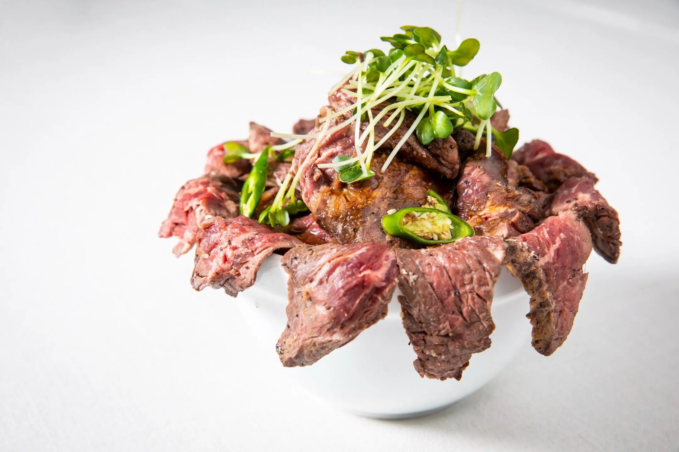 ジューシーに焼き上げたハラミを、こぼれるほど盛り付けたボリューム満点のオリジナルの丼です。