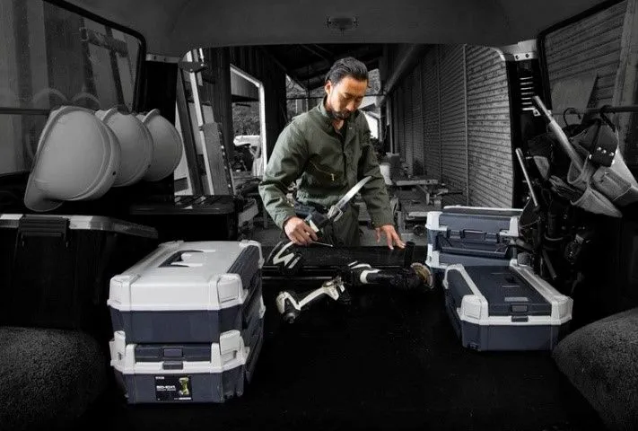 付属のキャリングケースは、持ち運びやすさや収納しやすさを考慮し連結も可能です。
