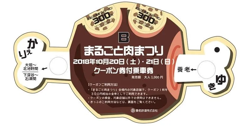 まるごと肉まつり養老2018へお出かけの際は、「まるごと肉まつりクーポン券付乗車券」をぜひご利用ください。