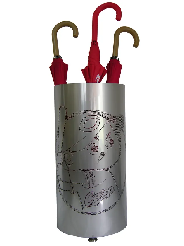 傘立ての正面に『カープ坊や』のロゴマークをパンチング加工(穴あけ加工)にて施しております。