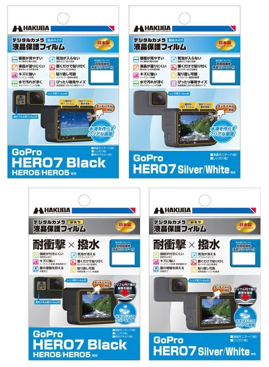 ハクバ写真産業株式会社 (本社:東京都墨田区)は、GoPro HERO7シリーズ用液晶保護フィルムに「親水」タイプと「耐衝撃×撥水」タイプの2種4製品を発売いたします。