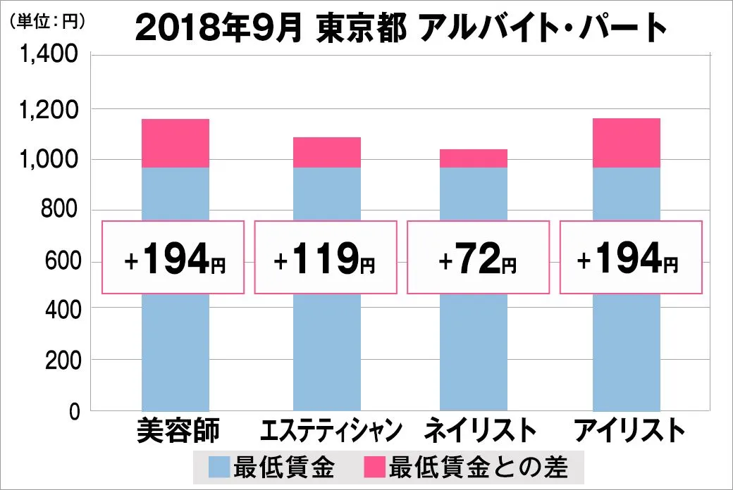 2018年9月 最低賃金から見る美容業界の給料調査【東京版】 (美プロ調べ)