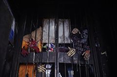 「監獄」をテーマにしたその店では、様々な仕掛け部屋を抜けて、やっとレストランの入口に辿り着きます。そこで「案内係」のポリスに罪を問われ、その場で「手錠」を掛けられて、薄暗い廊下を連行された先、鉄格子に囲まれた監獄個室が食事するために用意された「客席」です。お客様にはこの牢獄で食事が終わるまでは「囚人」として過ごしていただきます。自慢の食事中には、当監獄の看守長(店長)、ポリス(案内係)、模範囚(ホールスタッフ)、モンスターが素敵な「恐怖体験」でおもてなしをしてくれます。