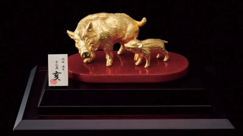 来年の干支「亥」の親子像が登場