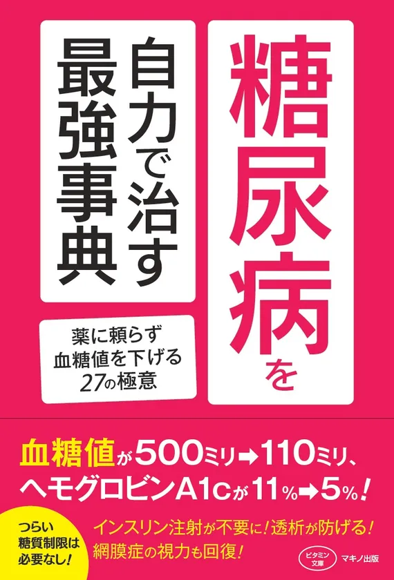 株式会社マキノ出版(東京都文京区)は、「血糖値が500ミリ→110ミリ、ヘモグロビンA1cが11%→5%!」「インスリン注射が不要に!」「網膜症の視力も回復!」といった症例が満載の書籍『糖尿病を自力で治す最強事典』を2018年10月17日に発売します。